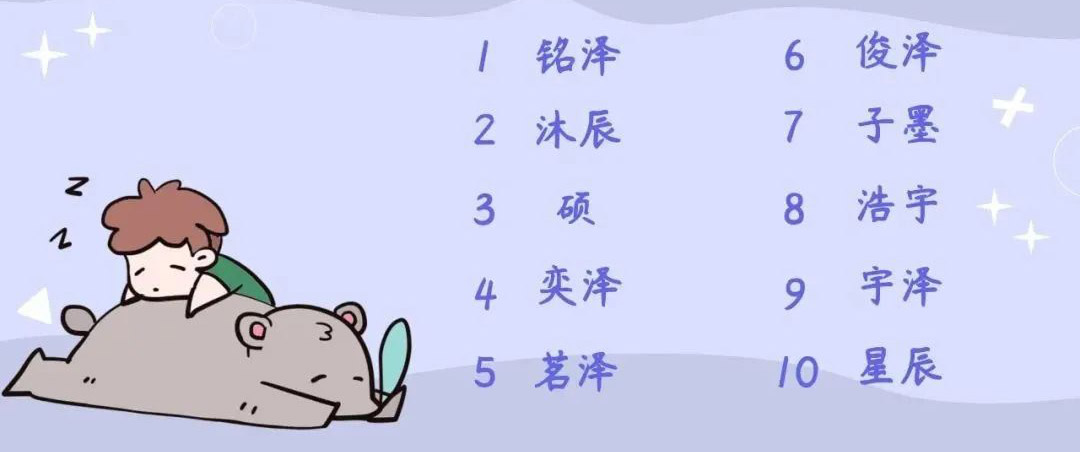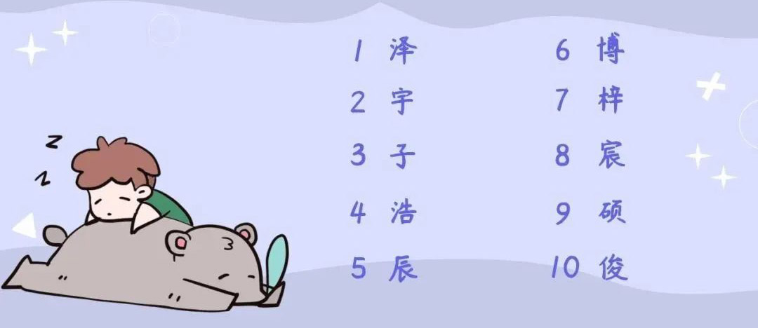 鱼峰新生男宝名字常用字TOP10(数据来自网络仅供参考)