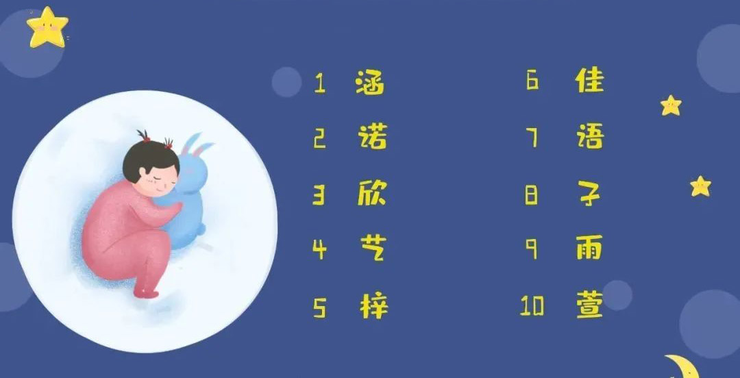 鱼峰新生女宝名字常用字TOP10(数据来自网络仅供参考)